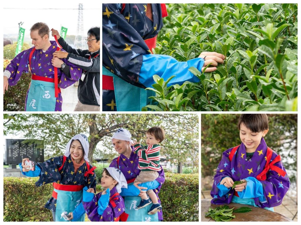 ความพิเศษในครั้งนี้คือ ได้รับเกียรติจากคุณ Inui แห่งสมาคมการท่องเที่ยวนิชิโอะ มาช่วยดูแลเราและพาเราไปลองสวมชุด “คาสึริ” ซึ่งเป็นชุดสำหรับการเก็บชาแบบดั้งเดิม แล้วลงพื้นที่เก็บชาในไร่จริงๆ บรรยากาศทั้งสนุกและได้ฟีลท้องถิ่นสุดๆ