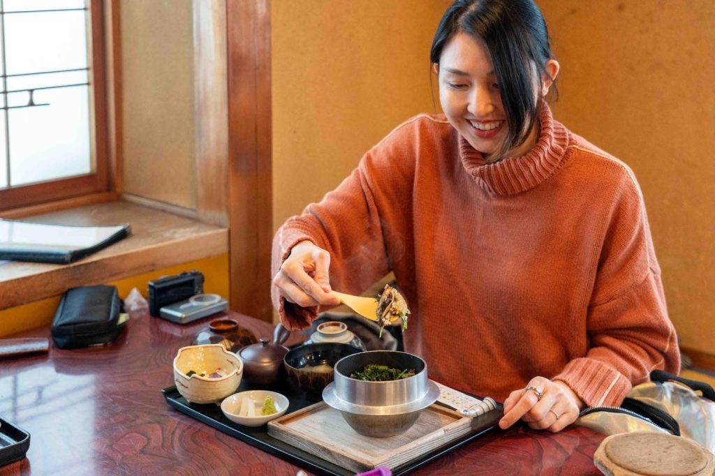 หลังจากดื่มด่ำกับมัจฉะจนเต็มอิ่มแล้ว ก็ได้เวลาไปต่อกันที่ ร้าน Uotora ร้านอาหารระดับตำนานที่ครองใจชาวนิชิโอะมายาวนาน ที่นี่คุณจะได้ลองเมนูขึ้นชื่อของเมืองอย่าง “อุนางิคามะ” (ข้าวหน้าปลาไหลในหม้อ) ซึ่งเป็นทีเด็ดที่ห้ามพลาดเลยนะคะ