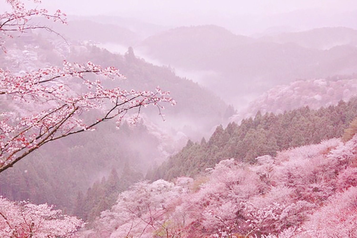 4. ซากุระคลุมภูเขาที่ภูเขาโยชิโนะ (จังหวัดนารา)