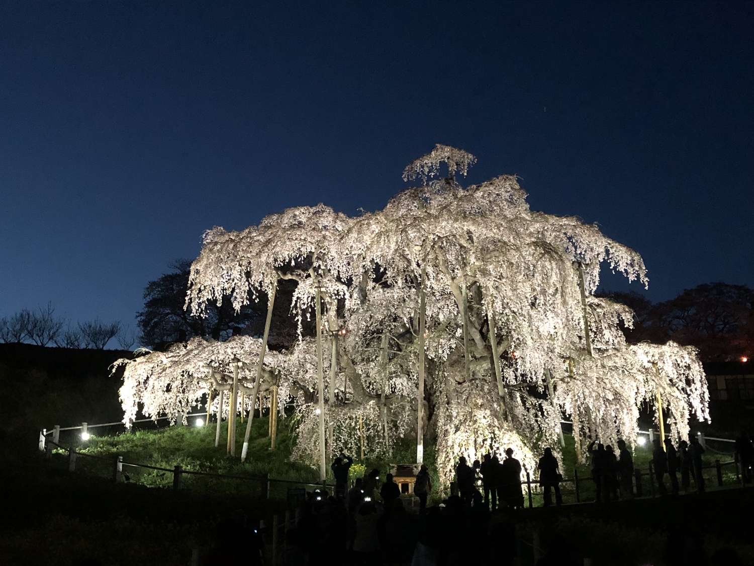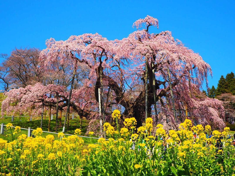 มิฮารุ ทากิซากุระ คือต้นซากุระย้อย (เบนิชิดาเระ) ขนาดยักษ์ที่มีอายุกว่า 1,000 ปี! คำว่า “ทากิซากุระ” แปลว่า “ซากุระน้ำตก” เพราะเมื่อกิ่งก้านที่โค้งย้อยลงมาผลิดอกสีชมพูเข้ม จะดูสวยงามราวกับน้ำตกที่กำลังไหลรินลงมา ความยิ่งใหญ่นี้ทำให้ที่นี่ถูกยกย่องให้เป็น 1 ใน 3 ต้นซากุระที่ยิ่งใหญ่ที่สุดของญี่ปุ่น