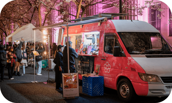 นอกจากนี้ บนถนน Edo Sakura-dori ยังมีงาน “Nihonbashi Sakura Yatai Night” ที่เปลี่ยนถนนให้กลายเป็นโซนอาหารยามค่ำคืนท่ามกลางแสงไฟ มีทั้งอาหาร เครื่องดื่ม สินค้าสไตล์ญี่ปุ่น และการแสดงดนตรี