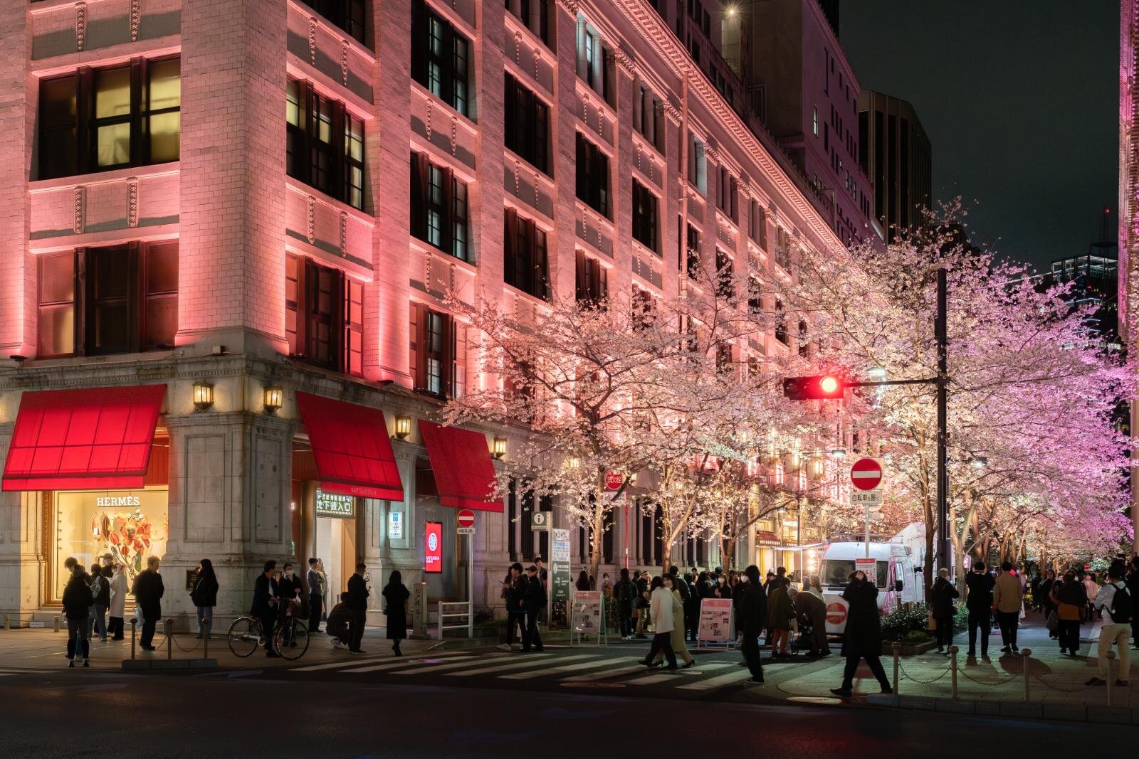 ถนน Edo Sakura-dori และถนน Chuo-dori จะถูกอาบด้วยแสงไฟสีชมพูอ่อนๆ อาคารประวัติศาสตร์และตึกสมัยใหม่จะดูสวยงามแปลกตาไปจากเดิม กลายเป็นจุดถ่ายรูปซากุระยามค่ำคืนที่โรแมนติกสุดๆ