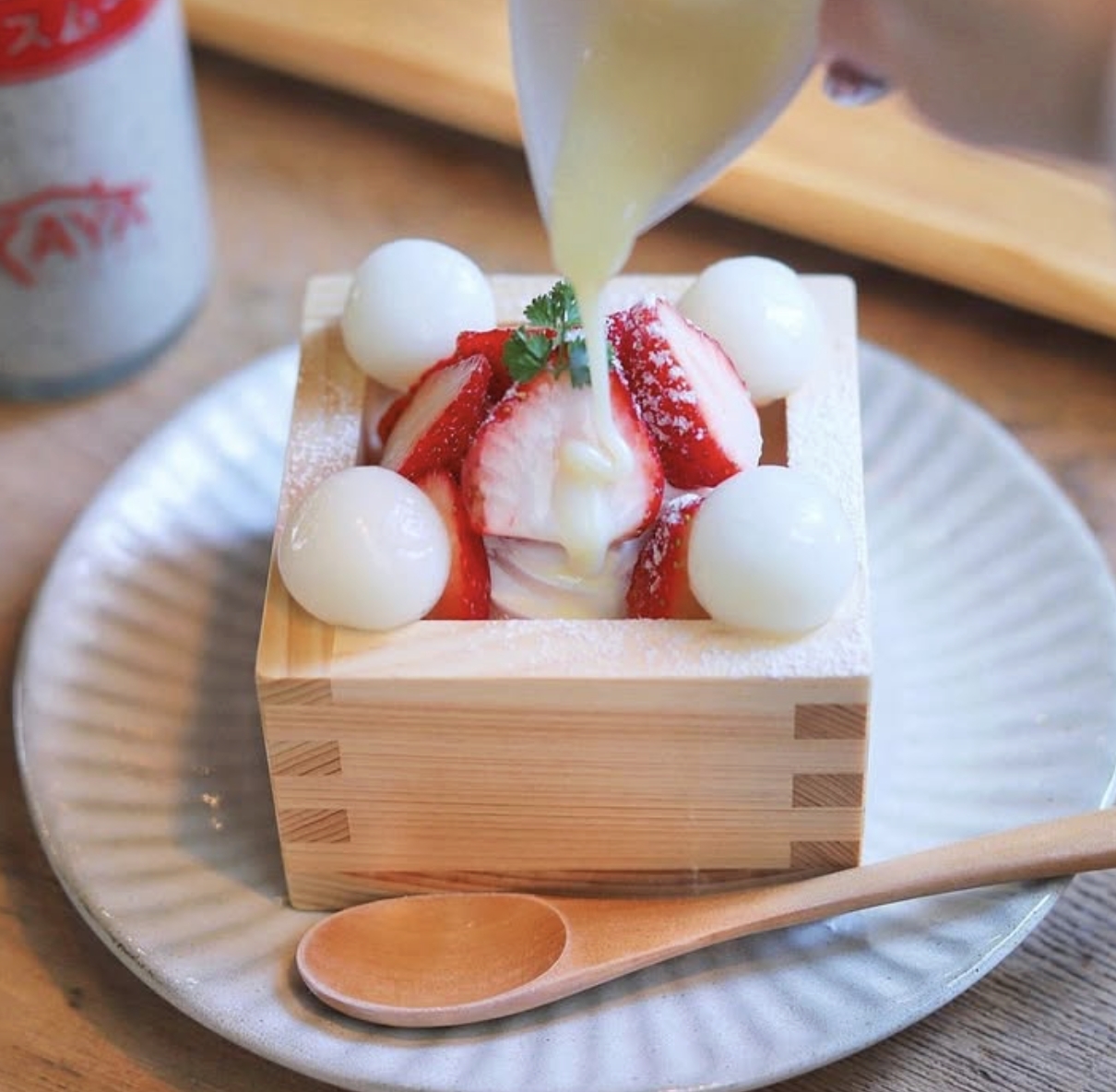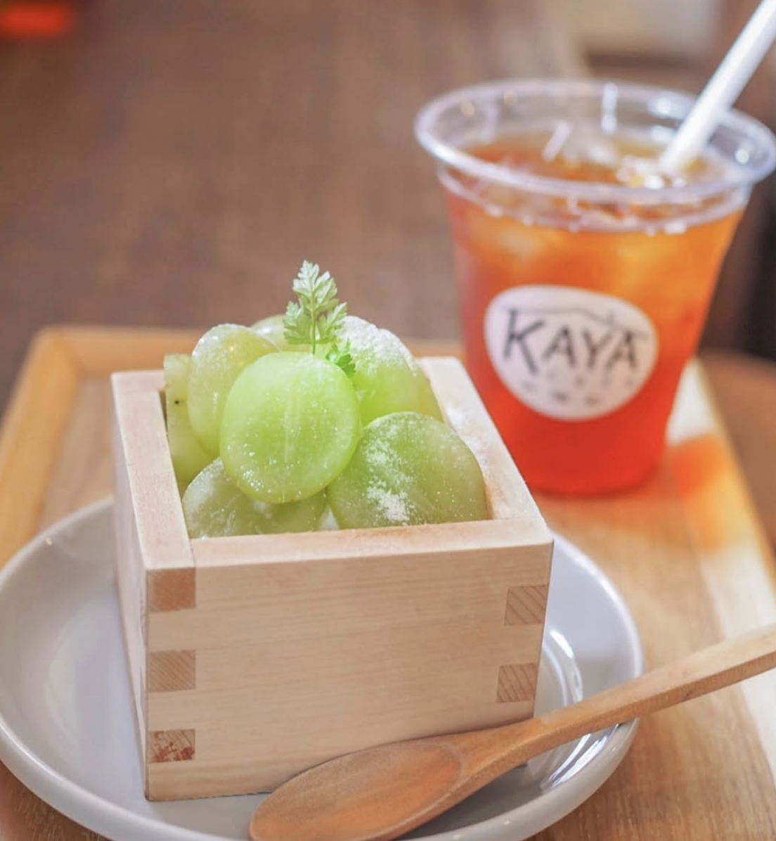 ความครีเอทีฟของ KAYA cafe ยังไม่หมดแค่นี้ เพราะทางร้านเลือกเสิร์ฟทิรามิสุเต้าหู้ด้วย “มัตสึ” (Masu) ซึ่งเป็นถ้วยไม้ใส่สาเกแบบดั้งเดิมของญี่ปุ่น การนำเสนอที่ผสมผสานความร่วมสมัยกับวัฒนธรรมดั้งเดิมนี้ ช่วยดึงดูดใจนักท่องเที่ยวชาวต่างชาติให้เดินทางมาลิ้มลองกันเป็นจำนวนมากอีกด้วย