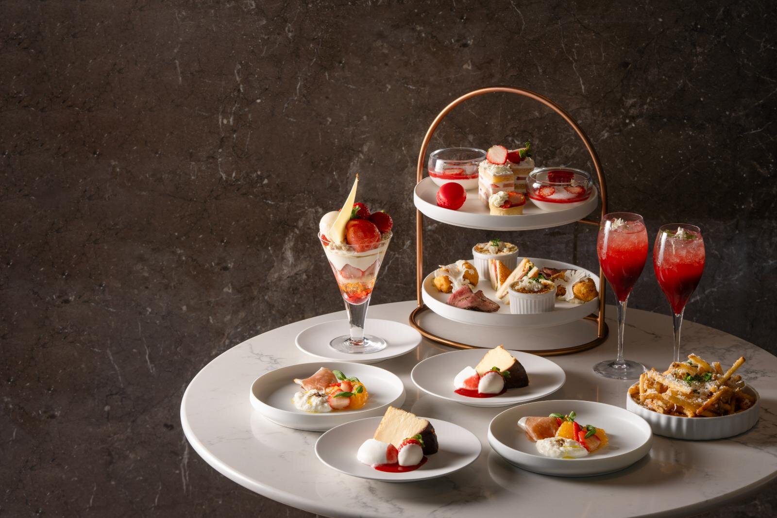 ของหวานหลายชนิดที่ทำจากสตรอว์เบอร์รี่ญี่ปุ่นและไวท์ช็อกโกแลตที่มีเนื้อสัมผัสนุ่มนวลและความหวานละมุน เสิร์ฟพร้อมเครื่องดื่มมากกว่า 20 ชนิด